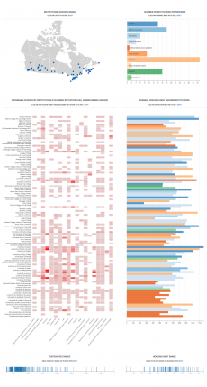With rising youth unemployment rates and tuition costs in Canada, young people need a way to make an informed decision about post-secondary education. Not only is it important to be able to compare academic fees, but cost of living must also be factored in. Our app allows users to view the average rent and tuition based on institution and program of study at a glance. An overview at the top lets potential students narrow things down by province or city. Alternatively, one can start out limiting the search by desired fields. Sliders at the bottom can be used to filter the results by monetary ranges. No other tools empowers members of the next generation to guide their future paths based on interests, geographic constraints and financial factors in a multifaceted manner.